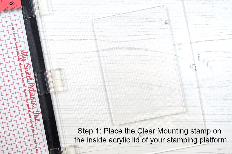 First of all, you need to stick the solid clear stamp to the acrylic block or to the acrylic lid of your stamping platform.