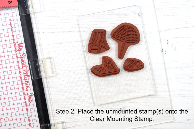 Next, you have to place your unmounted stamp(s) onto the Clear Mounting Stamp. A little pressure should be enough to make them adhere firmly.