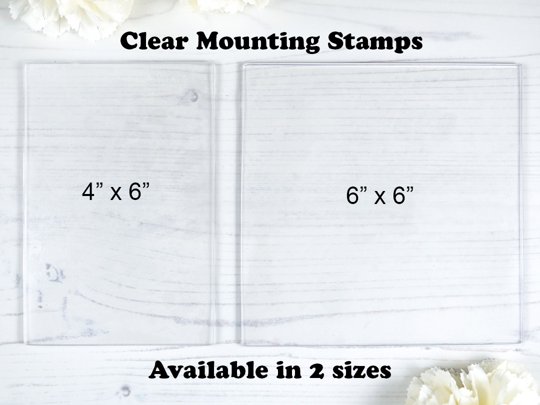 Purple Onion Designs has just released two solid clear stamps just perfect as a temporary sticky surface for unmounted rubber stamping. They’re available in two sizes – 4×6 solid clear stamp and 6×6 solid clear stamp – and you can use them with acrylic blocks and acrylic stamping platforms, as well, to hold your unmounted stamps in place while stamping. Brilliant, isn’t it!?